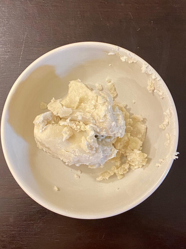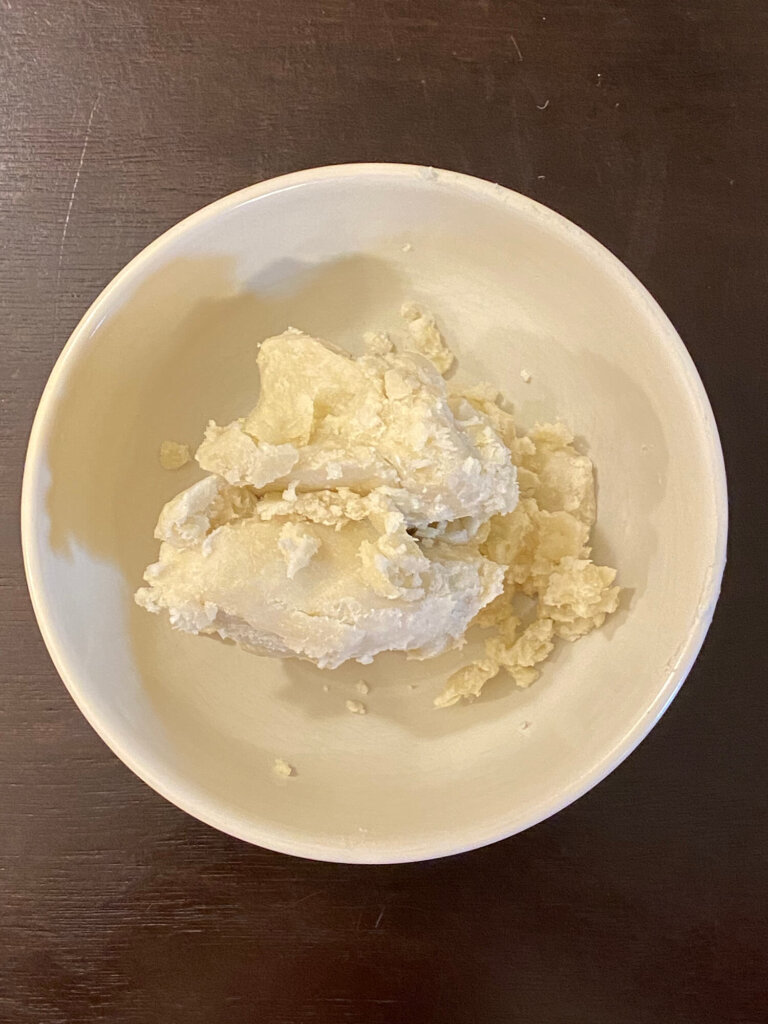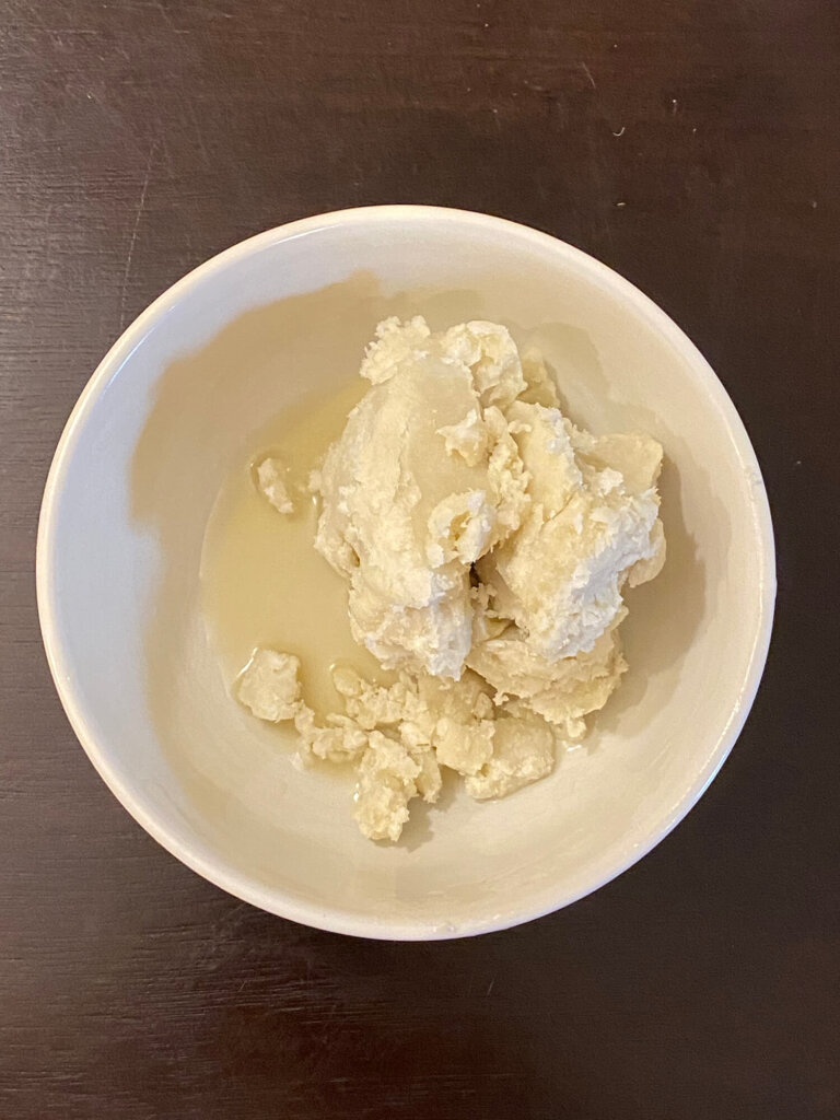 If you don’t have a microwave you can alternatively place shea butter in a glass bowl and then float the glass bowl in a saucepan filled with water. Next, turn the stove to medium until the shea butter softens.