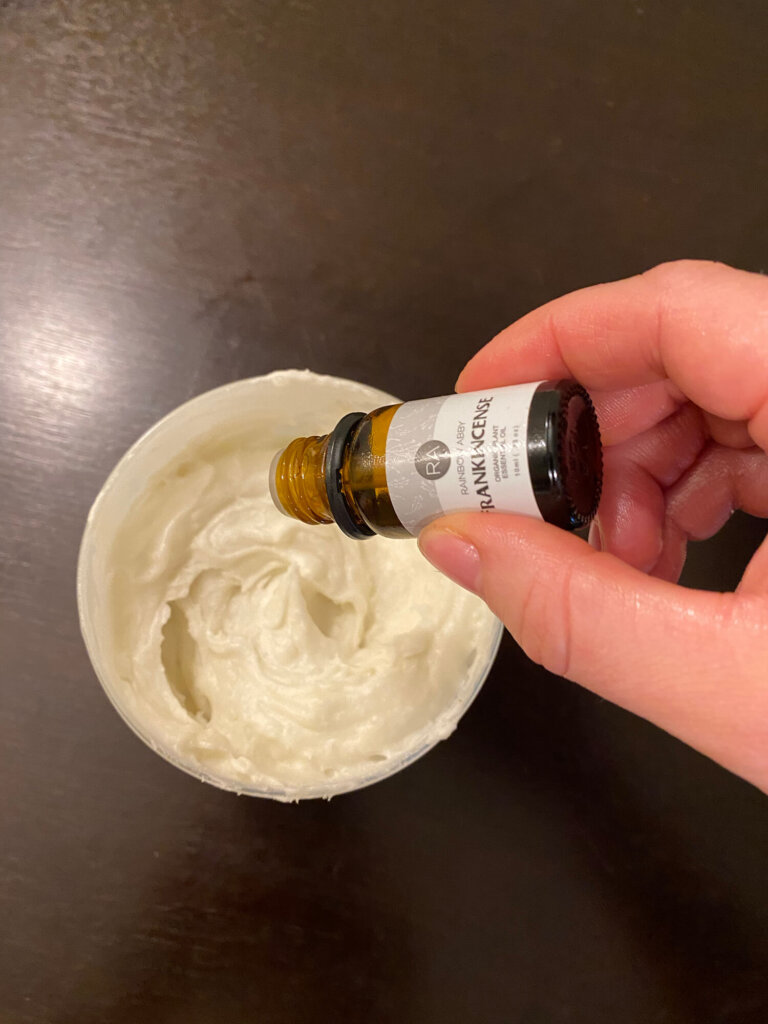 You can substitute this cream with other essential oils, I chose frankincense because frankincense is one of the best essential oils for your skin! It is highly regarded for its anti-aging abilities. As we age our skin cells don’t regenerate as quickly as in our youth, but Frankincense promotes the growth of new cells in our skin.