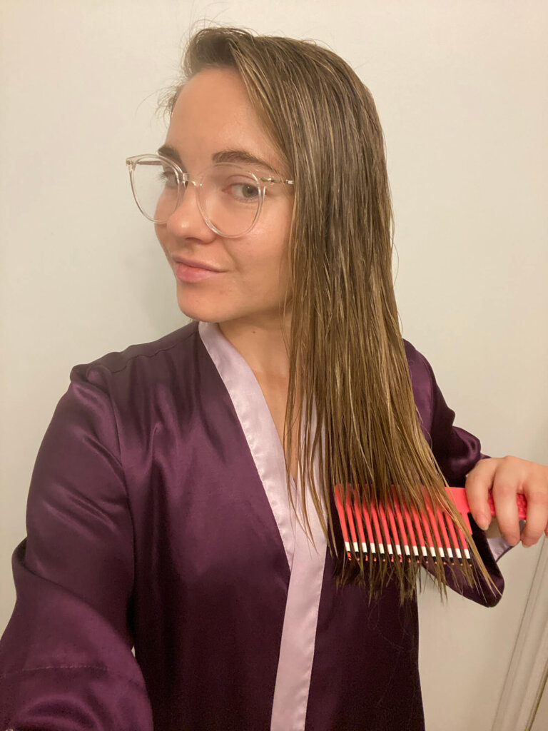 Wet hair is more prone to breakage. After you just spent your precious time conditioning your hair in the shower why break it with the wrong brush? To prevent damage, use a wide tooth comb to brush your hair when it’s wet. Begin by combing through your ends and work your way up to your roots. You can even comb your hair while there’s still conditioner in it so that it is easier to detangle.